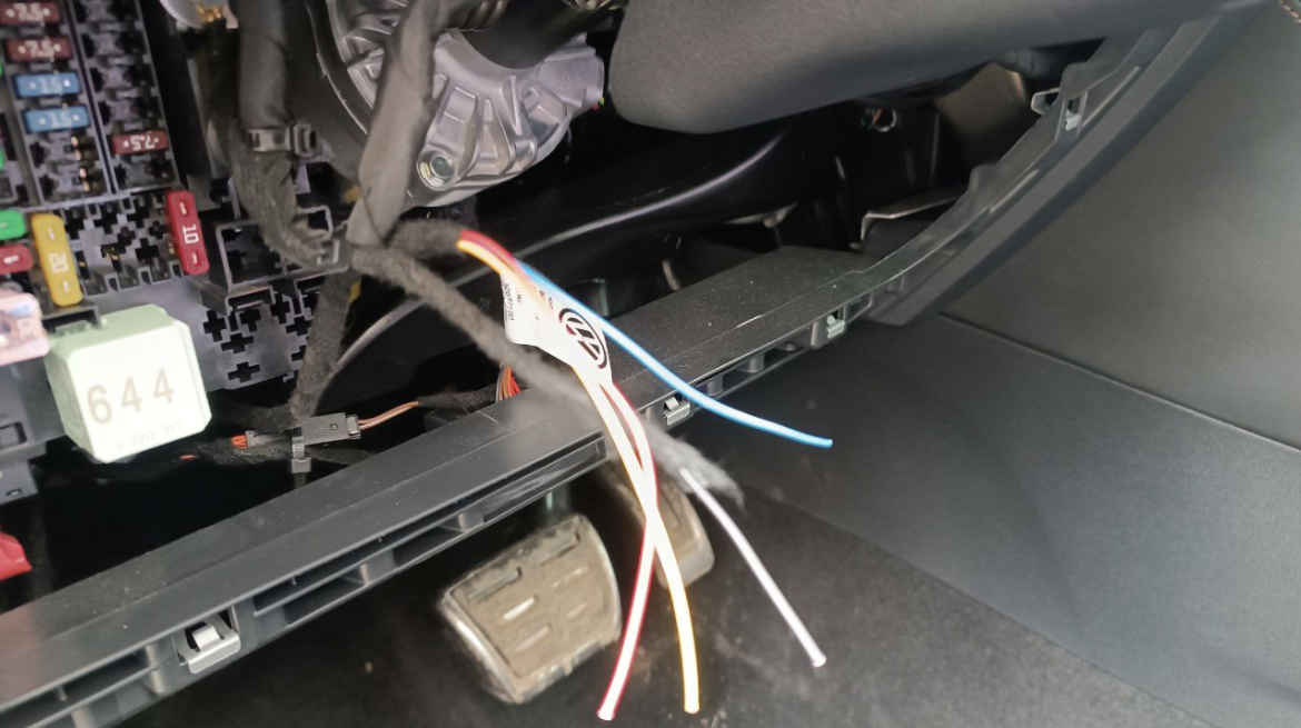 Выводим к крышке предохранителей,можно врезать кнопку туда .