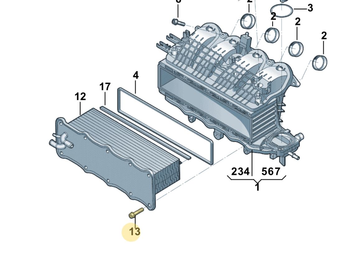 OEM 04E 145 749 E /L04E 145 749 G -Промеж. охлад. наддув. воздуха/водяной охладитель впускного коллектора для VA7/ VS5/VS7/VS8 .