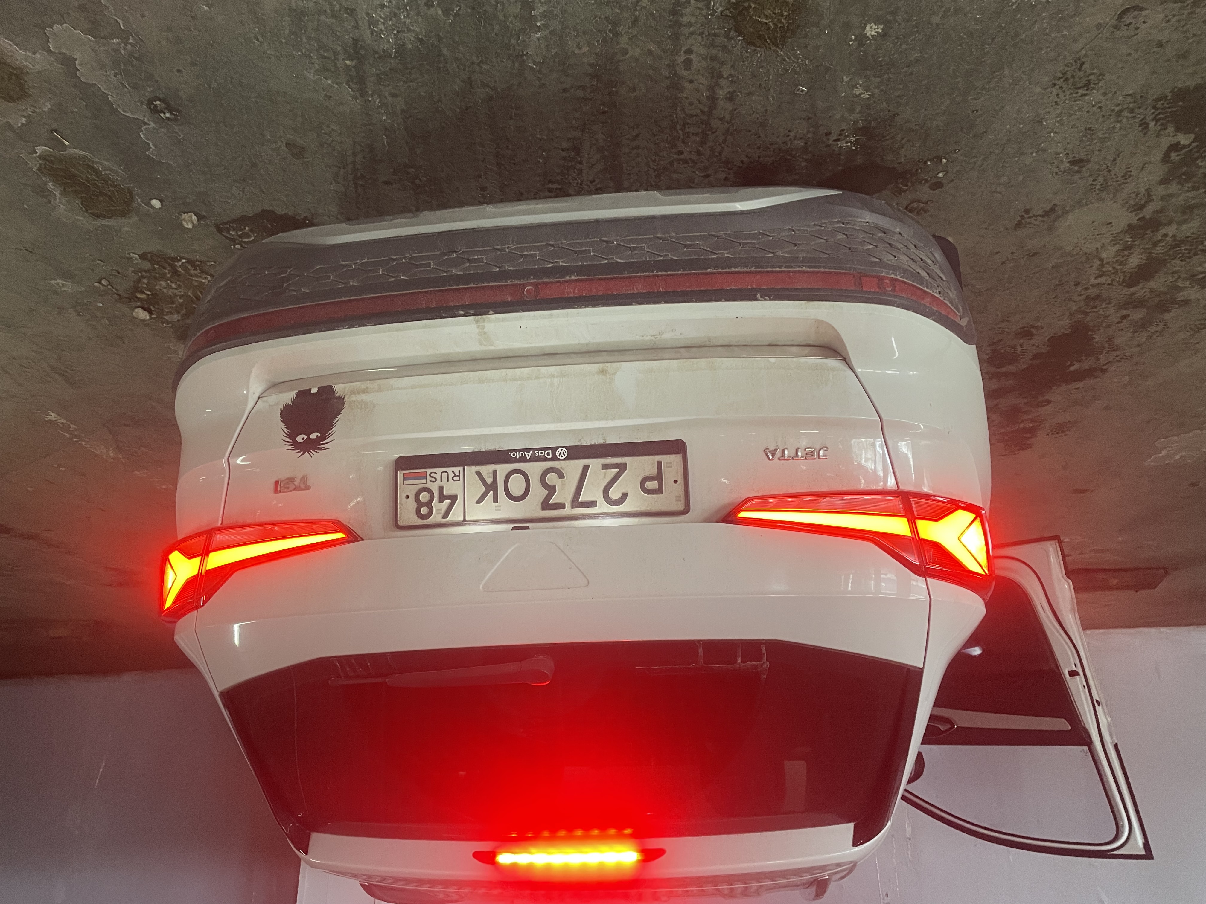 Фонари JETTA VS7 хоть и совершенно идентичны по форме VS5, но имеют светодиодные габаритные огни (LED) и задний противотуманный фонарь(LED) в левой внутренней секции, вместо ламп накаливания. Немного отличается по длине сами габаритные огни.